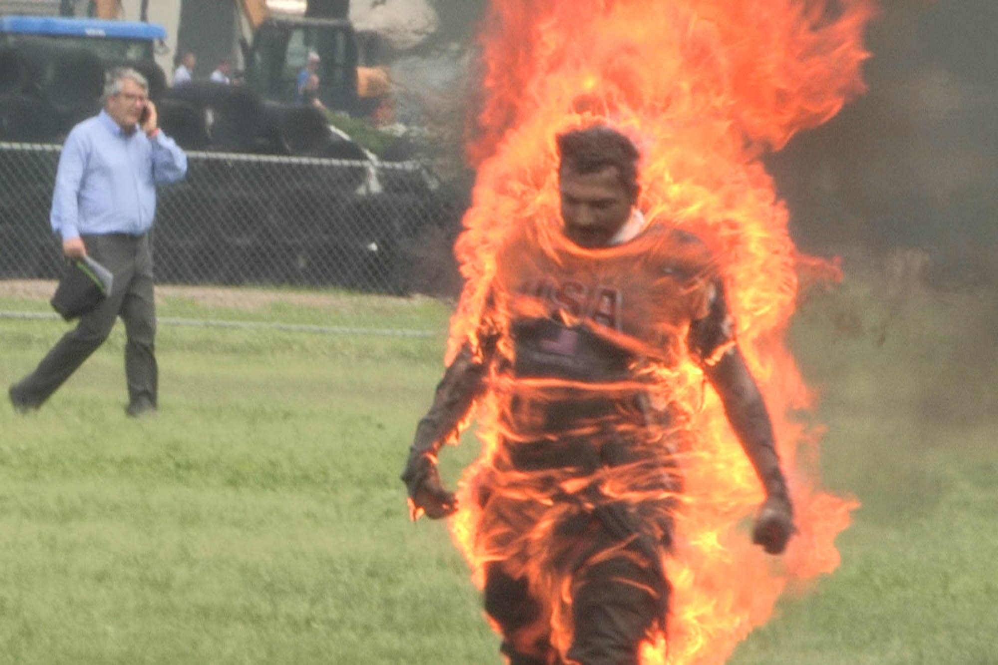 epa07611405 A video grab shows a man who set himself on fire before being extinguished by police officers on the Ellipse across from the White House, in Washington, DC, USA, 29 May 2019. According to the US Secret Service the man was administered first aid and transported to a local hospital. EPA-EFE/GREG MILLER ATTENTION EDITORS GRAPHIC CONTENT BEST QUALITY AVAILABLE