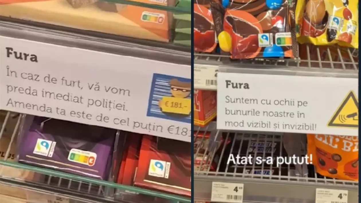 „În caz de furt vă vom preda imediat poliției. Amenda ta este de cel puțin 181 de euro”. „Suntem cu ochii pe bunurile noastre în mod vizibil şi invizibil”, sunt mesajele puse în supermarketul din Olanda.